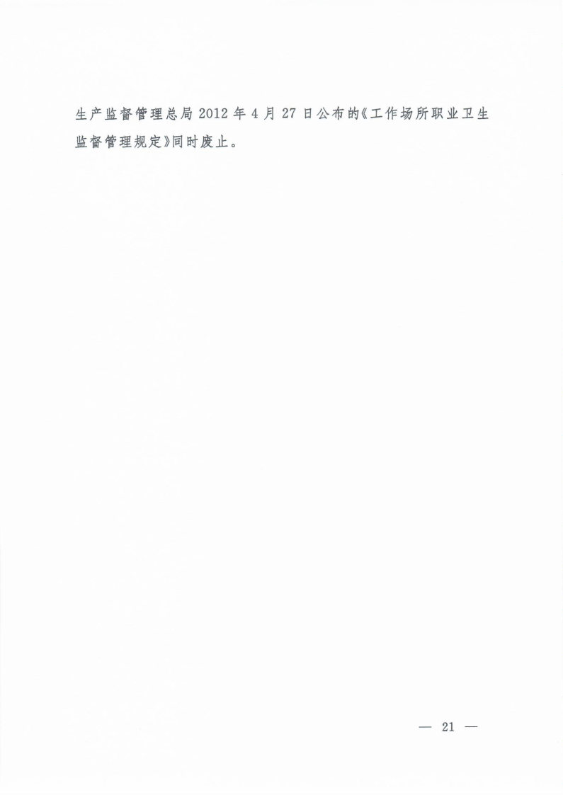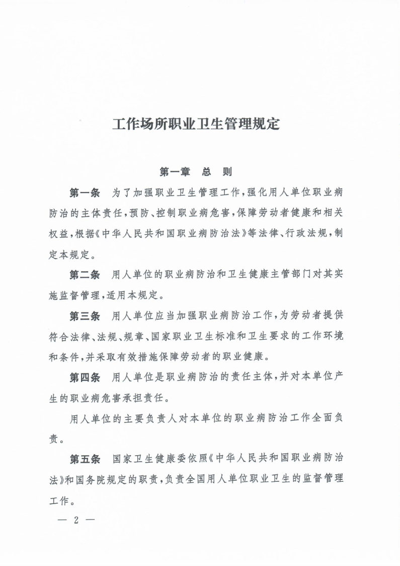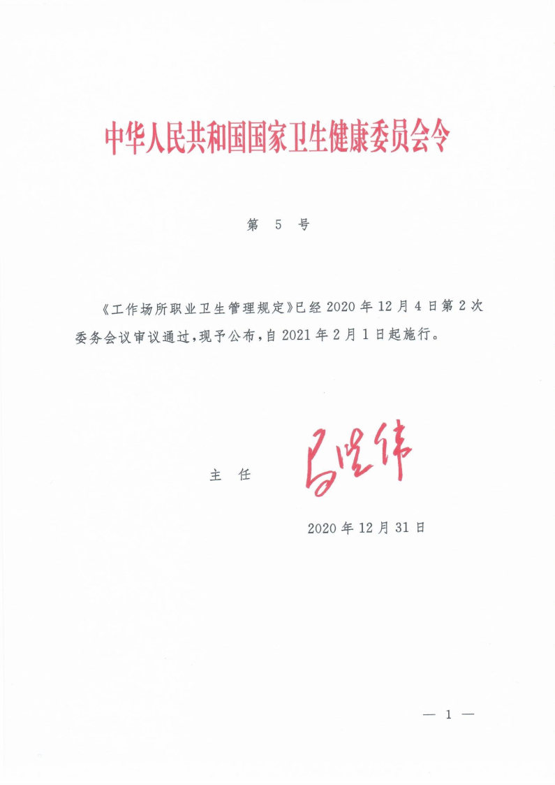 工作場(chǎng)所職業(yè)衛生管理規定(國家衛健委令第5號)